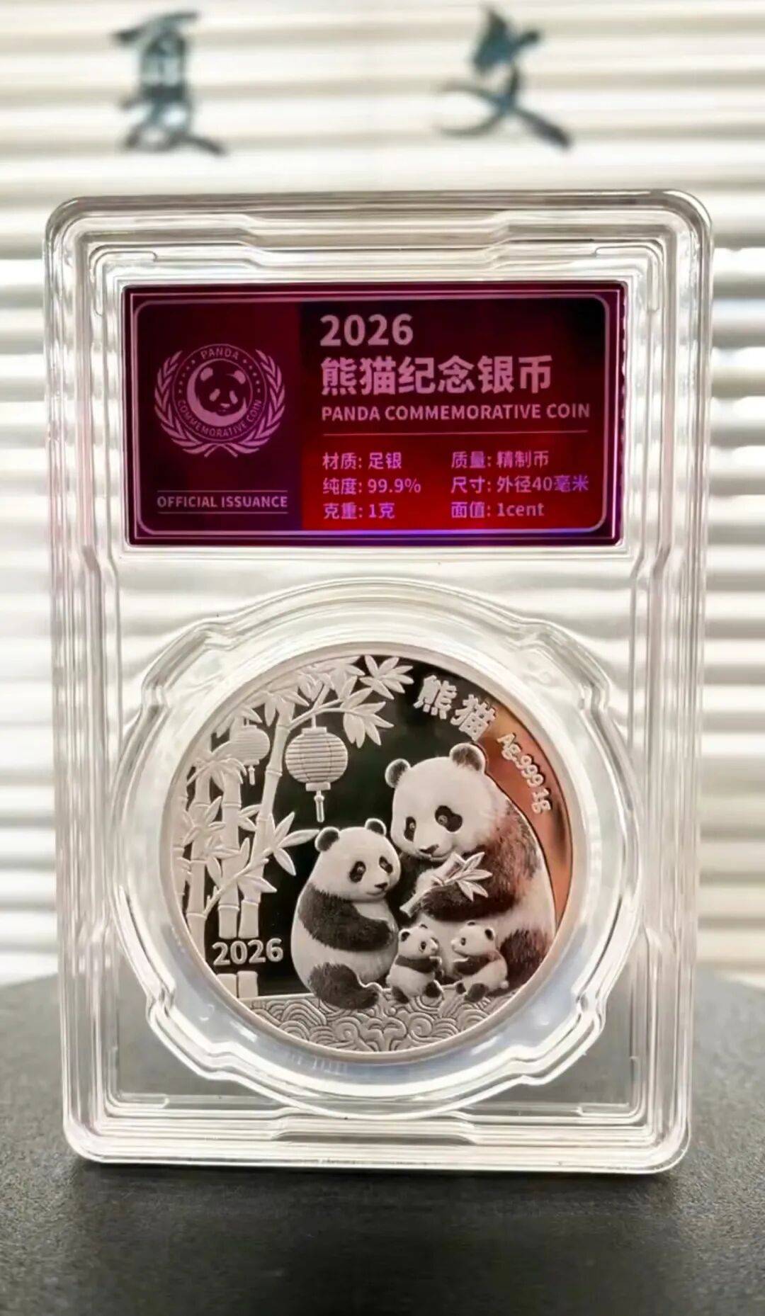 含Ag999足银1克,打造集“国宝名片、法定货币、贵金属材质”于一体的国际版熊猫纪念币。