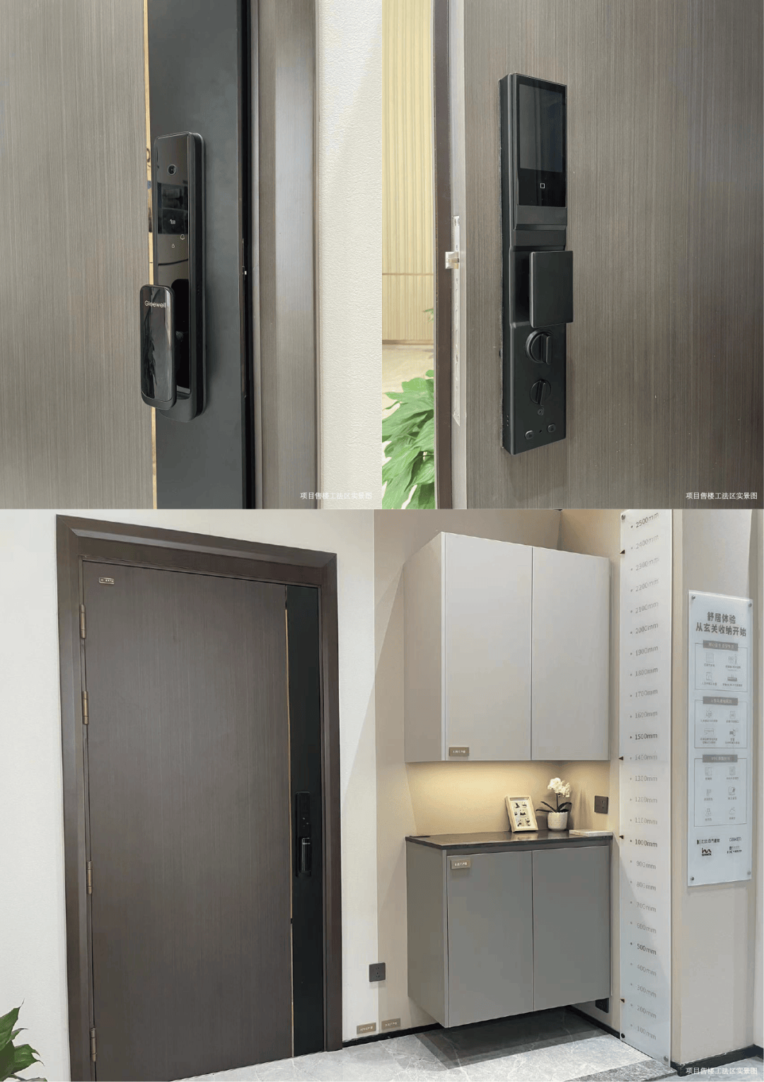 从进门那一刻起,你就能感受到不同。入户门安全坚固,智能门锁有七种开门方式。玄关柜用的都是符合日本最高环保标准(F4星)的板材,健康放心。